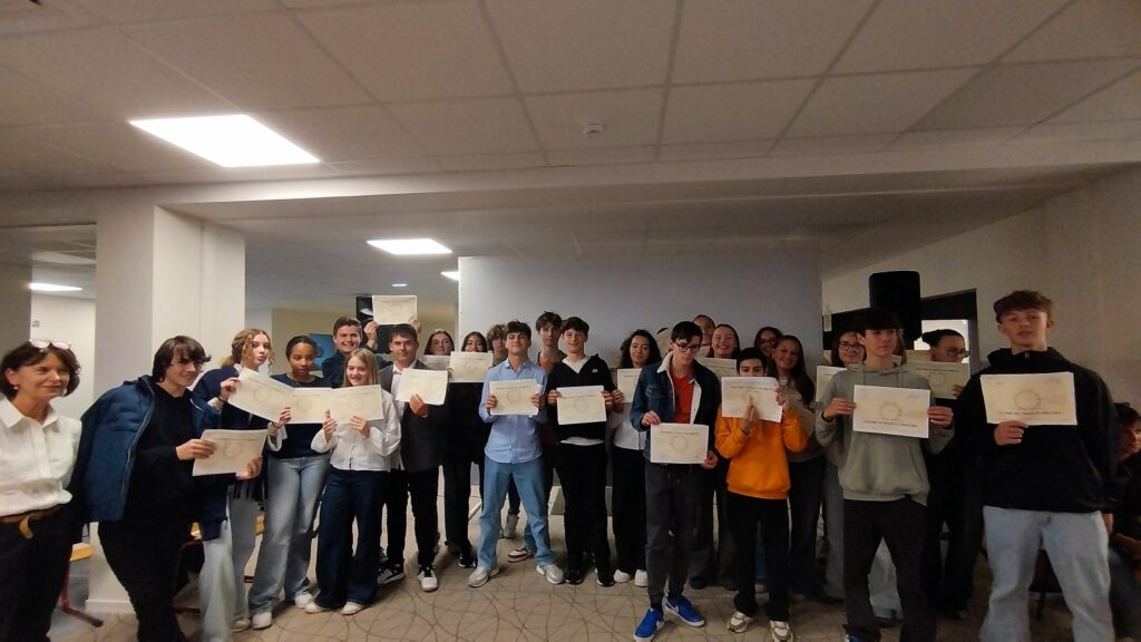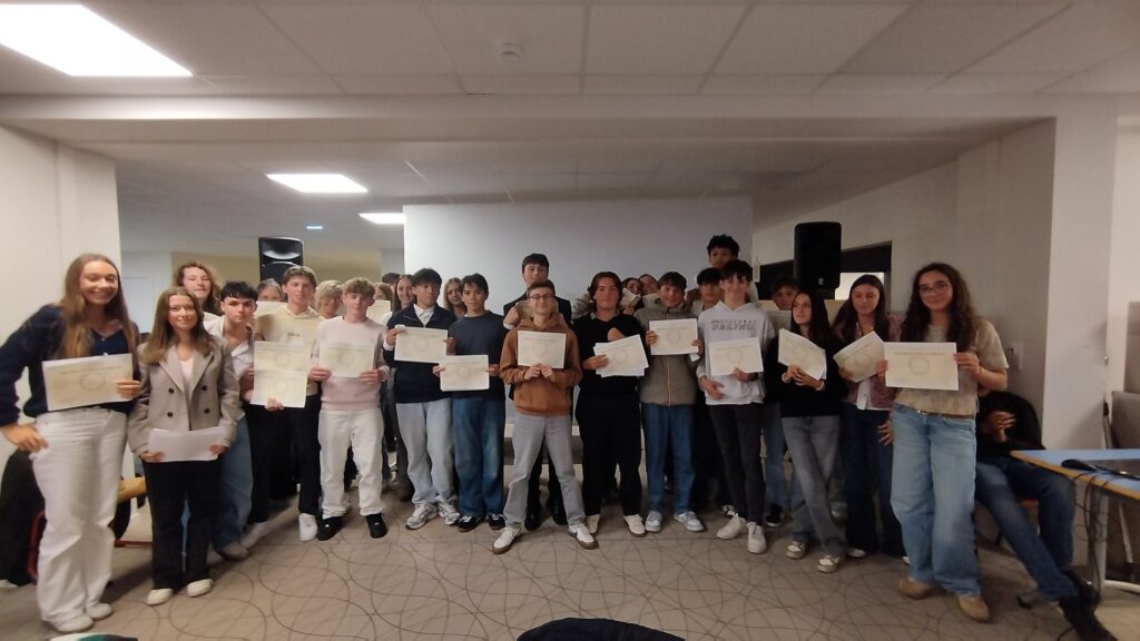 Entourés de leurs parents, frères, sœurs (et plus encore!), et de plusieurs professeurs de l’année passée, les élèves sont revenus dans leur établissement pour une soirée placée sous le signe de la convivialité et de la fierté. La direction du collège a animé la soirée, aidée par des élèves des 3èmes actuelles, au milieu des 150 personnes réunies.