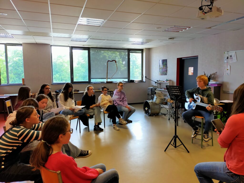 Tout au long de la journée, Heïdi Sevestre a pris le temps de découvrir les ateliers (écriture de slams, jeu sur l’aménagement du territoire..) ainsi que l’exposition mettant en valeur les projets interdisciplinaires réalisés durant l’année. Elle s’est montrée particulièrement attentive à chaque réalisation, n’hésitant pas à interroger les élèves, à valoriser leur créativité et à souligner la qualité de leur travail.